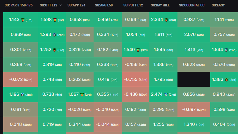 Mixed Strokes Gained (SGOTT Last 12 + SGAPP Last 50)