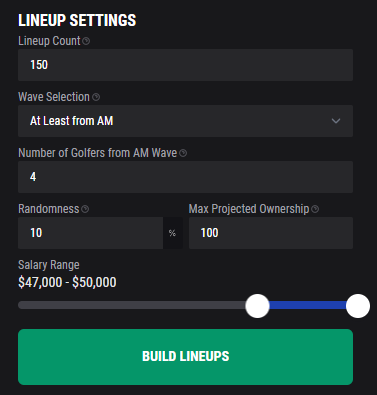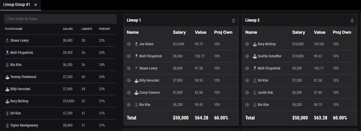 After youâve run lineups, youâll quickly be able to see how much exposure you have to each golfer in the field. If youâd like to manually adjust that exposure, you can swap any golfer in any lineup on the same page.