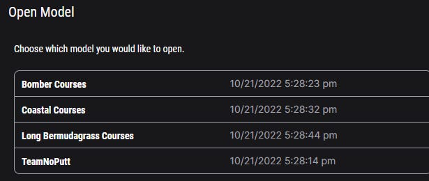 Your model inputs are now tied to your account meaning that you can save your most-used models and return to them whenever you want. Maybe youâll save a model for #TeamNoPutt or one for bombers. Maybe youâll save a different one for every course and come back to it each year. Itâs entirely up to you!